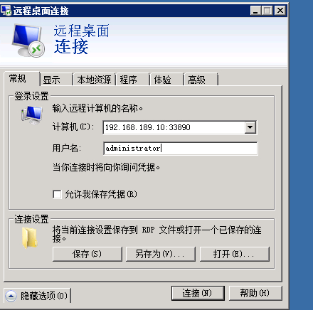 1、通过内部IP远程桌面方式 相同账号下的每个弹性云服务器都分配有一个内部IP用于跟当前帐号下的其他机器通信,例如要将A主机下 的数据转移到B主机中,就可以使用内部IP进行,登录B主机中-开始-运行输入mstsc-输入A主机的远程登录信息: