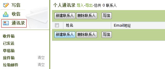 单击菜单栏中的'通讯录',进入通讯录页面,点击'新建联系人' 填入联系人信息,完成后单击'确定'键。