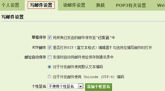 3. 选择“邮址自动保存”,发信时自动将邮件地址保存到通讯录中