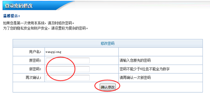 (2)点击修改密码,输入原密码,新密码,确认密码,最后点“确认修改”即可完成会员密码修改(如图2)