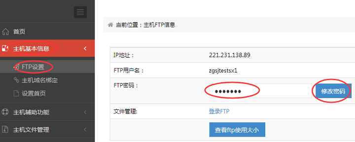 3 修改虚拟主机FTP密码