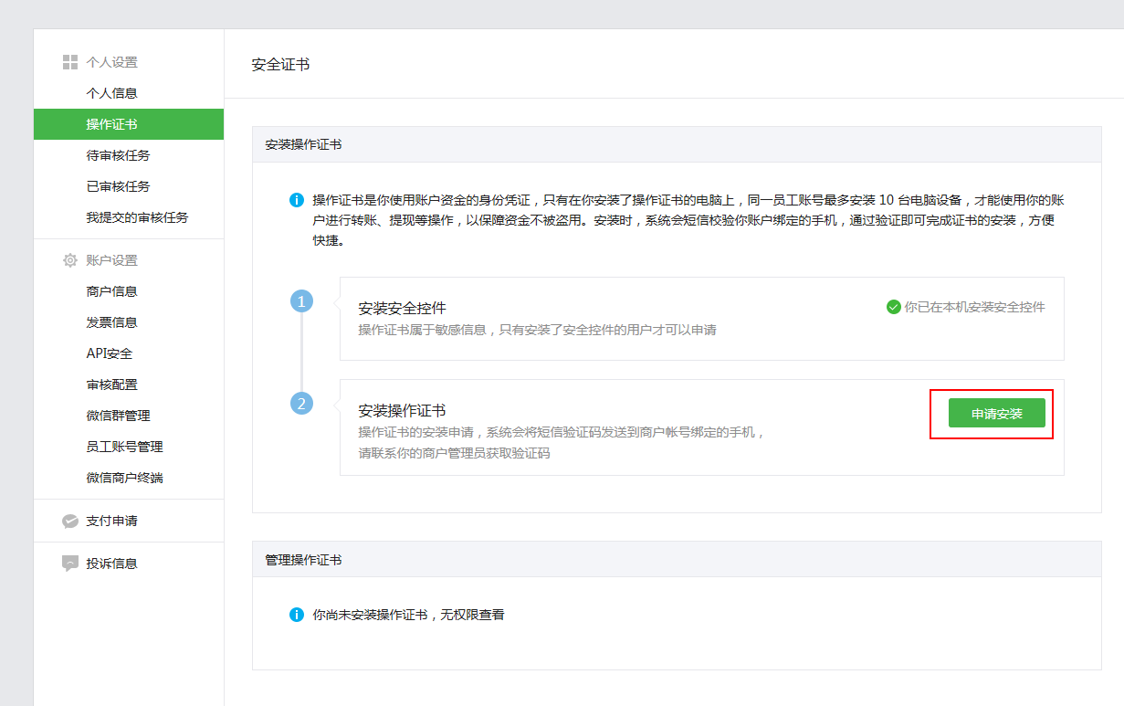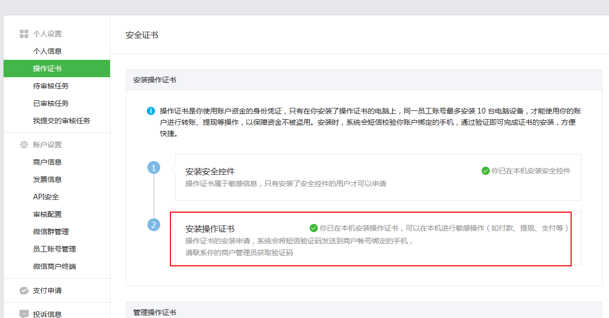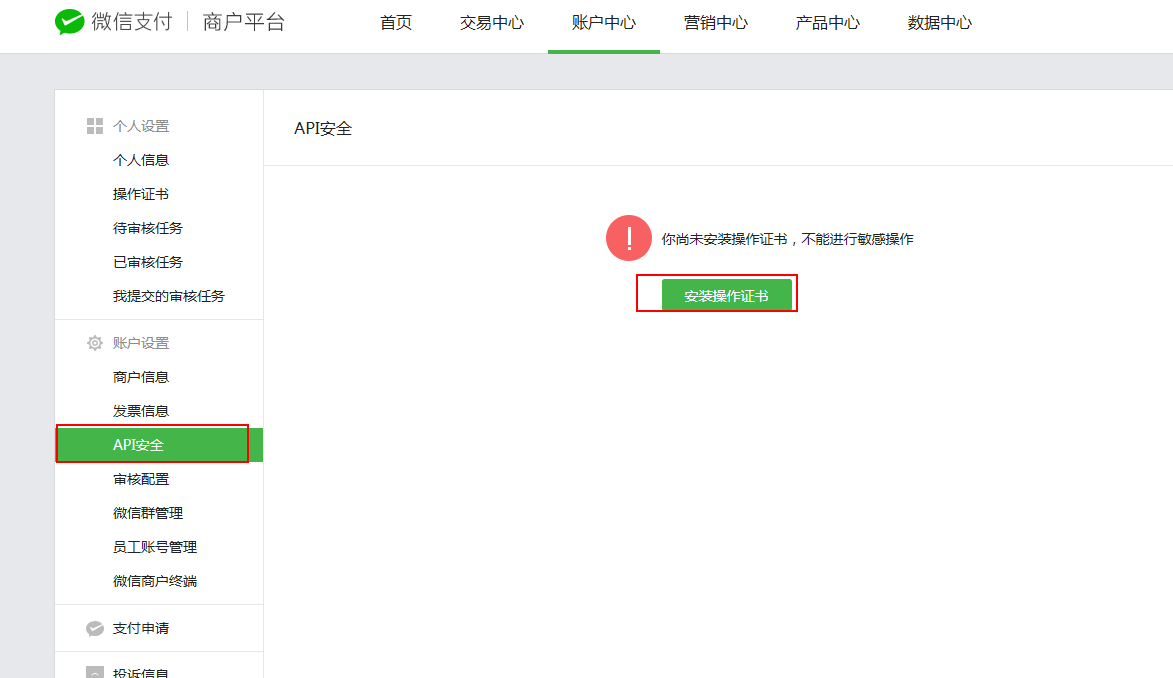 第三步:API安全>下载证书(可以下载到能够找到的位置)
